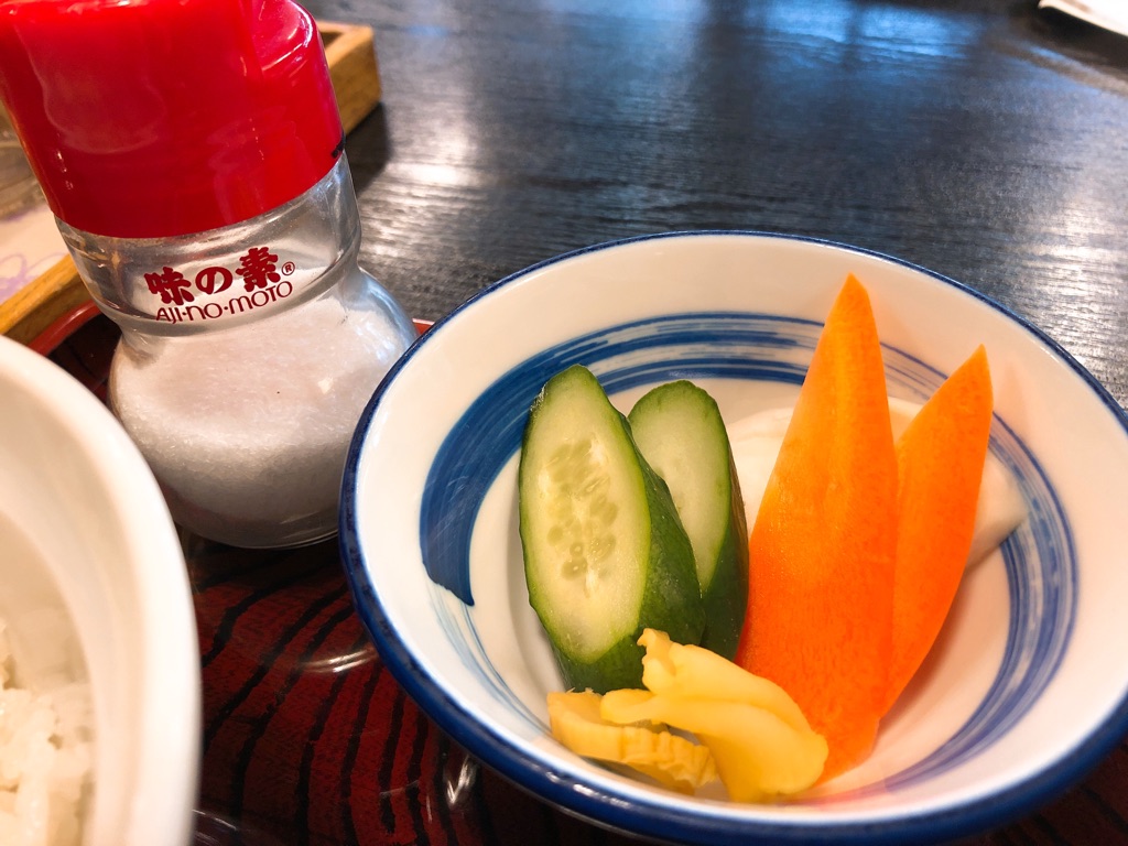 お漬物はぬか漬け。問答無用で味の素が付いてくるのが、昭和の定食屋っぽさありますねw