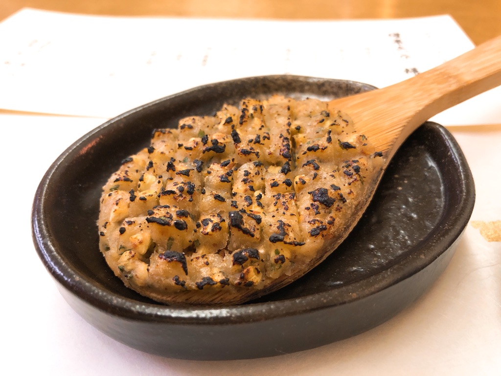 なめろうのように仕上げられた焼きみそは、のっけから日本酒が飲みたくなるじんわりとした旨味。練り込まれた蕎麦の味が味噌に負けていないのがすごい。
