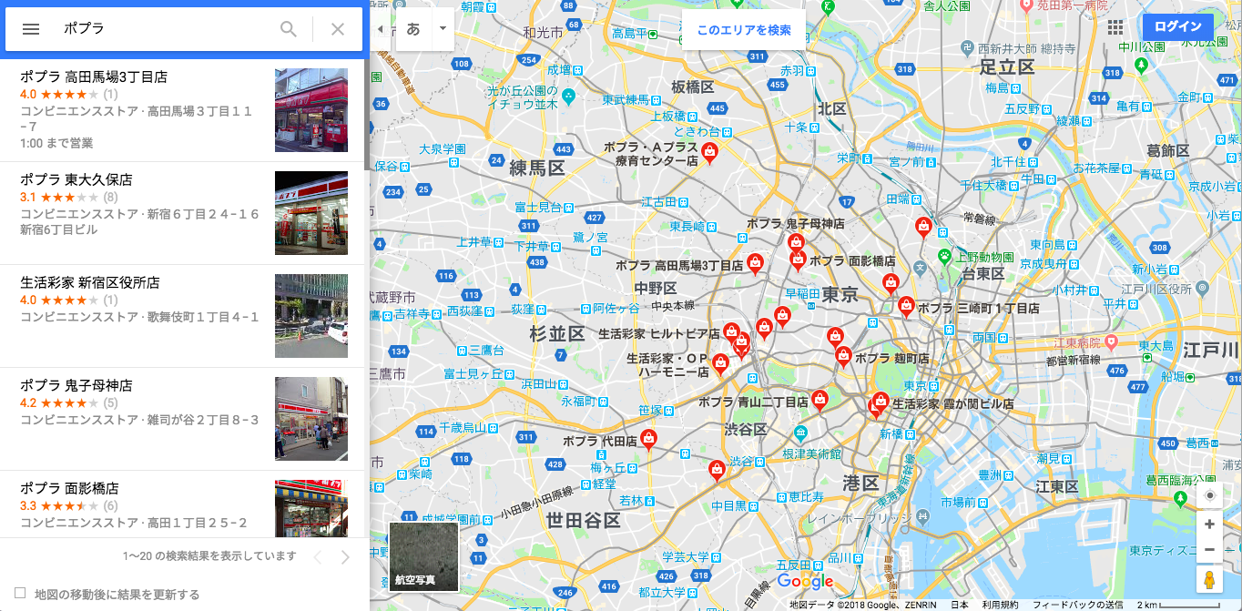 ほら。「ポプラ」、意外とある。ポプ弁特盛りを2食分にして食費を浮かそうという方は、とりあえず近場にポプラがないか、グーグルマップで探してみよう!w
