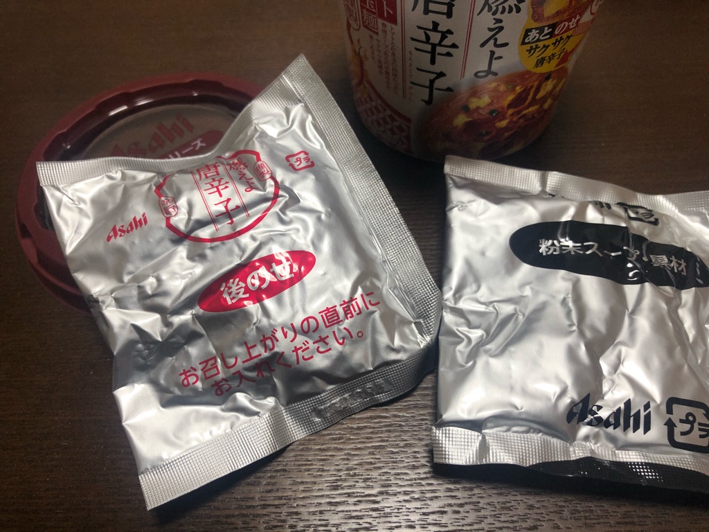 何だよ、合わせて燃えよ唐辛子を買って、トッピングしろってことかー! 買わせるね! Asahi、客にどんどん買わせるね! と、迷わず燃えよ唐辛子そのものも一緒に買って来たんですけど……