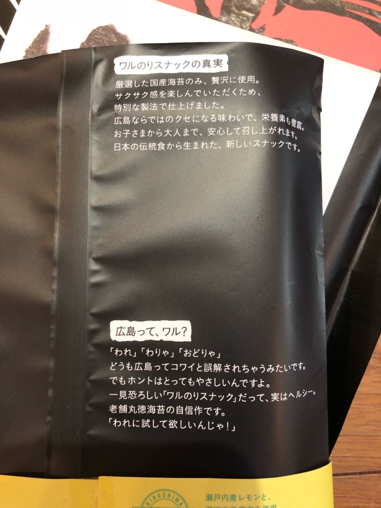 とりあえず今目の前にある「ワルのりスナック」は、全3種。瀬戸内レモン味、お好み焼き味、広島つけ麺味。