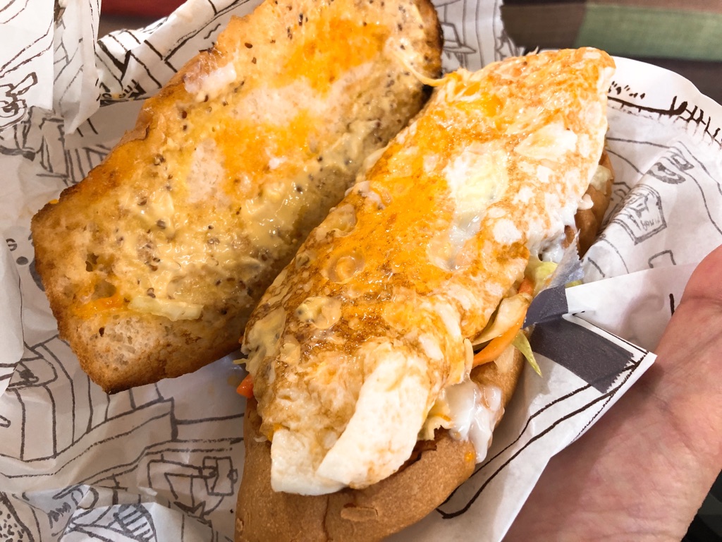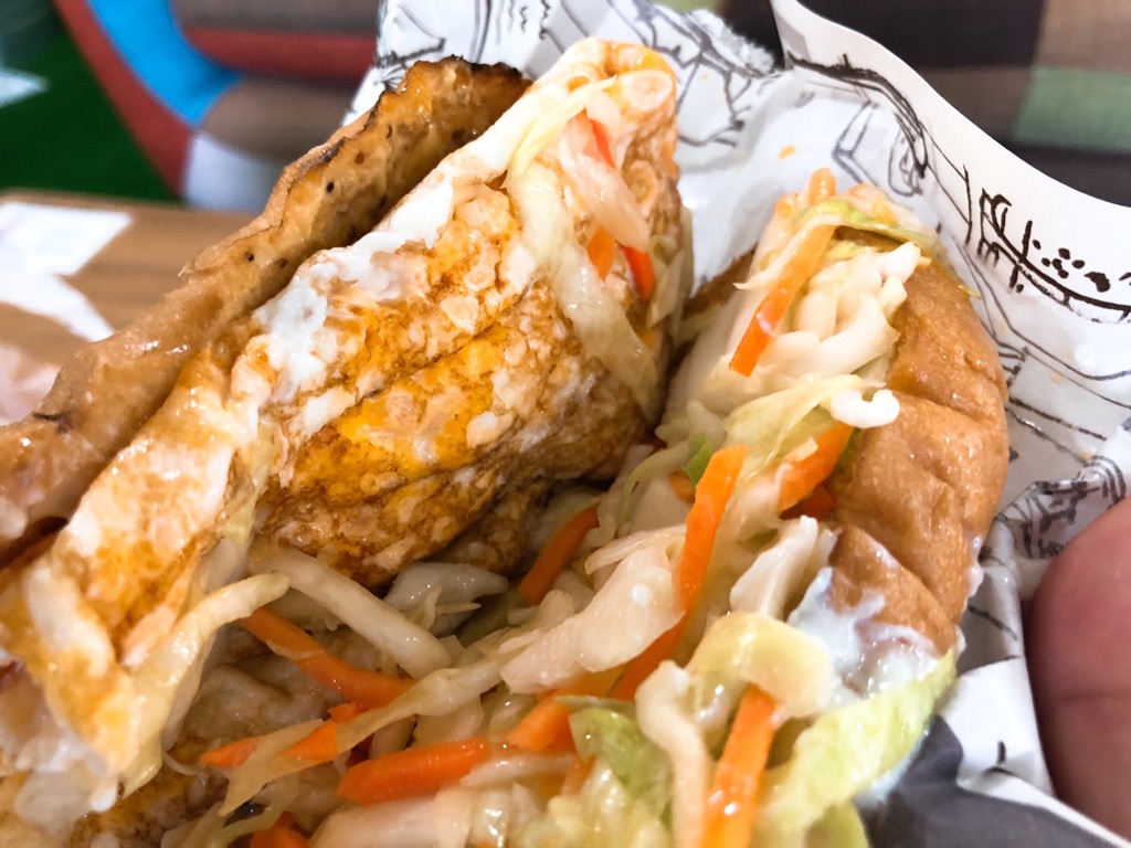 キャベツとニンジンの温野菜もサンドされているので、栄養的にもヘルシー。