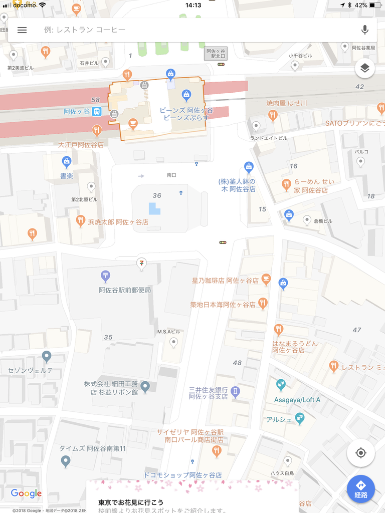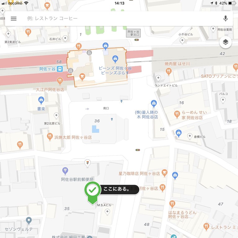 ん〜? 駅前だな。てか、ロータリー傍の、阿佐ヶ谷駅前郵便局と住所が同じ……