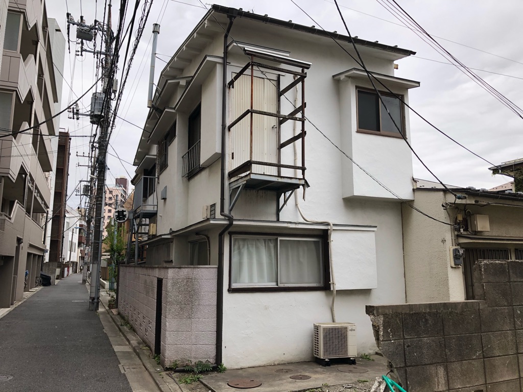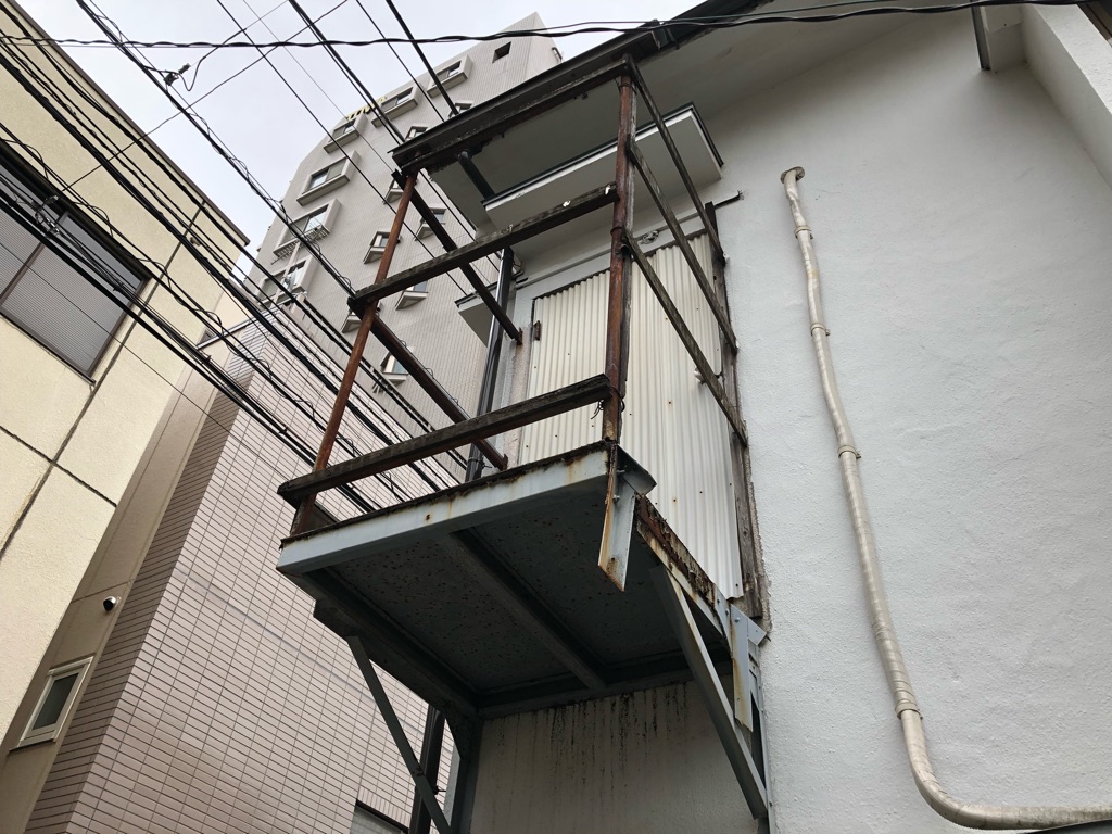 この建物、二階に狭いベランダある……と思ってじっと見てみたら、これベランダじゃないな。
