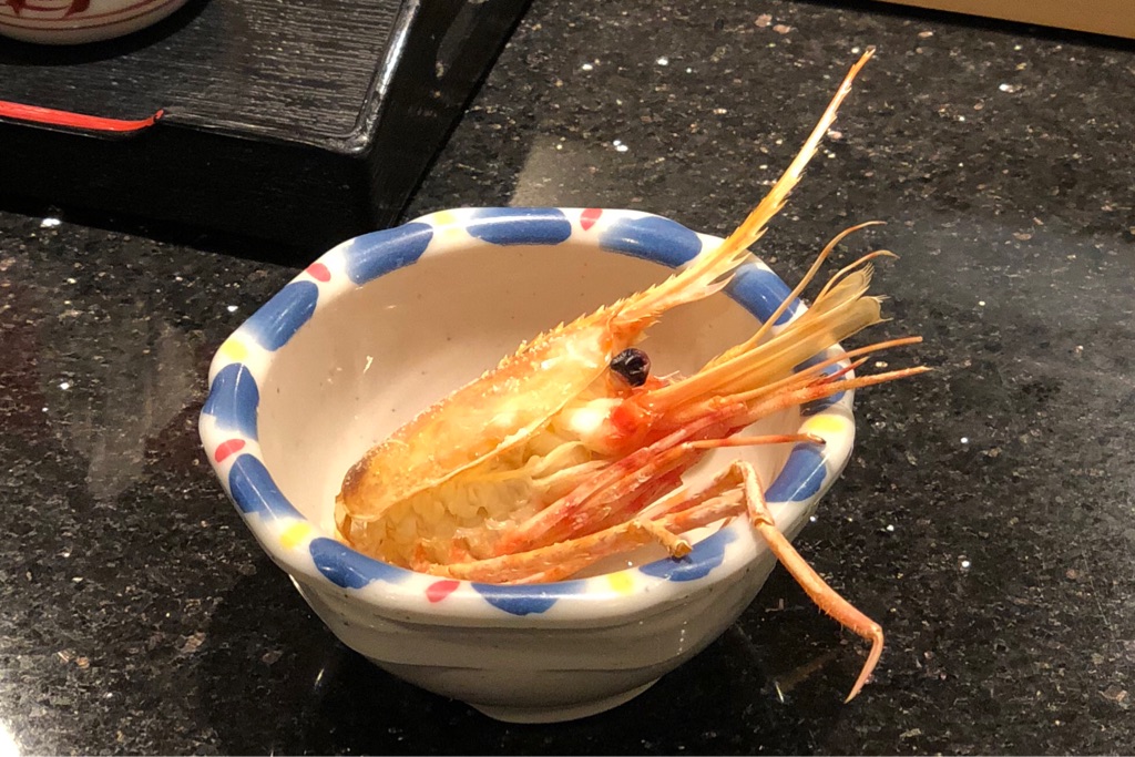 ボタン海老の頭はカリッと焼いてえびせんべい的に出してもらえますし、