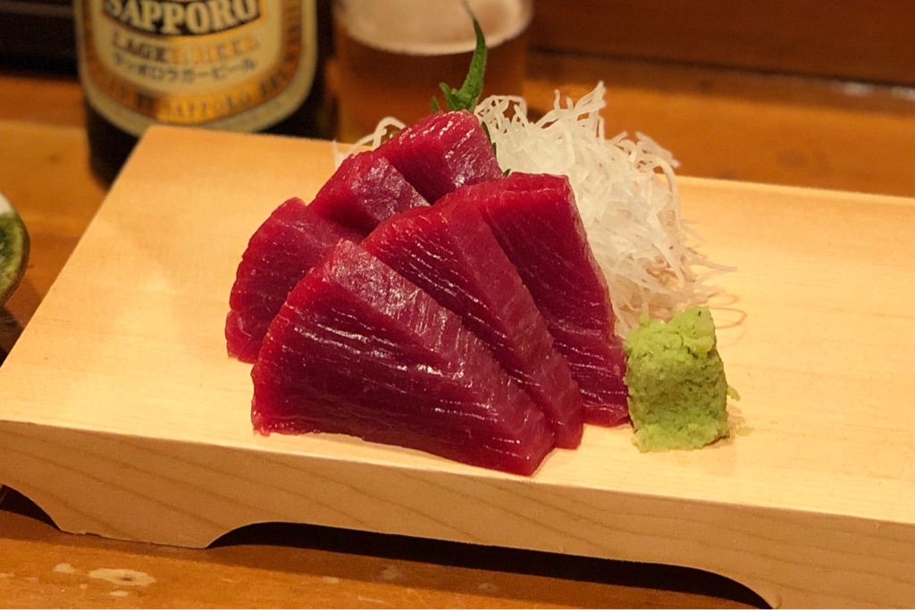 さて、この日「中ちゃん」では本マグロの赤身刺しをいただきました。これで900円ですよ。極厚じゃないですか?