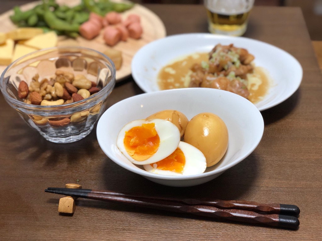 ナシ:枝豆、ゆで玉子、魚肉ソーセージ