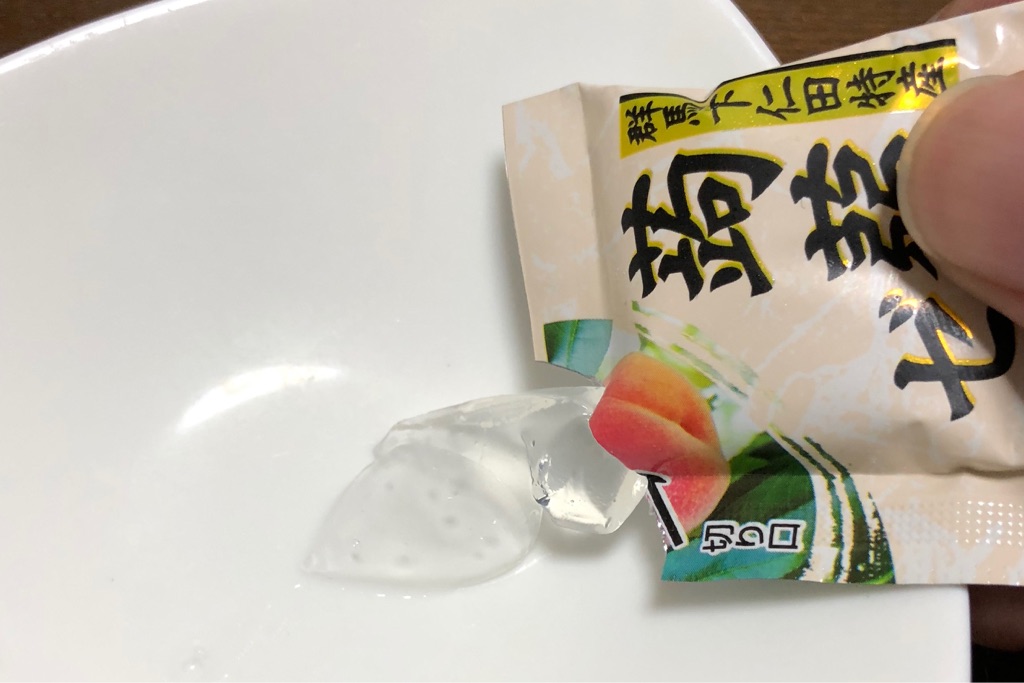 袋を破ってムニュッと取り出す、蒟蒻ゼリー。別にカップにこだわらなくても、こんにゃくのかたまりなのだから、何に入っていようが同じじゃないかと。
