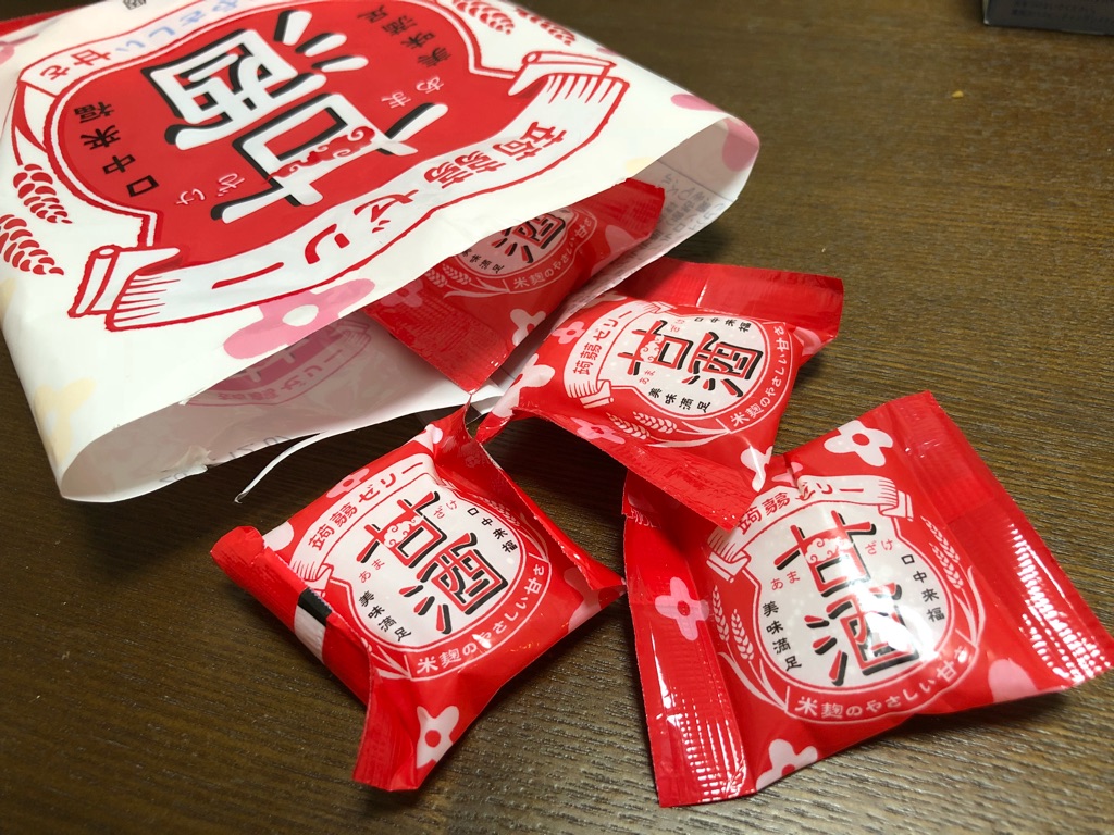 製造元は群馬の雪国アグリという会社。こんにゃく感(香り)が強く、どちらかと言うと蒟蒻ゼリー(甘酒味)というよりは、甘酒風味のこんにゃくそのものという感じです。