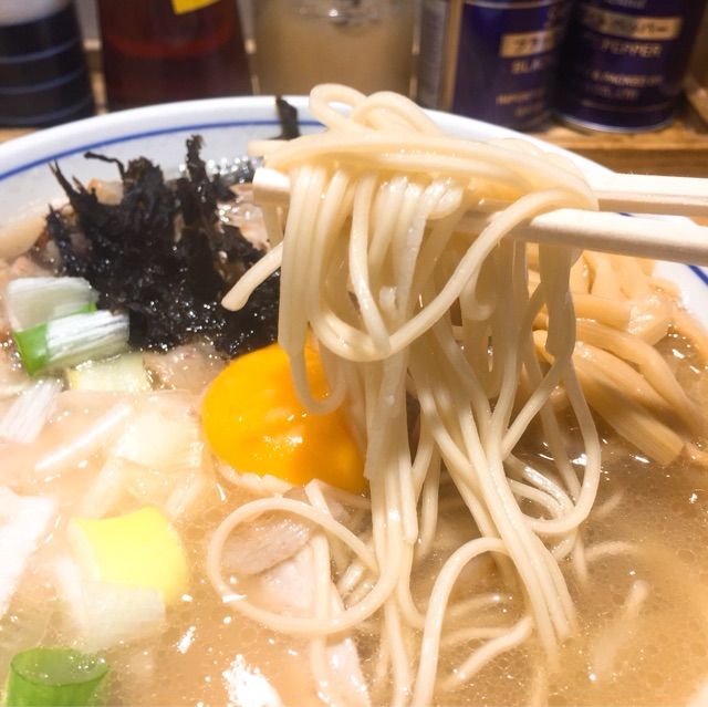 シンプルな味わいながらコクのある塩・醤油に比べ、スープはかなり濃い目、しょっぱめ。
