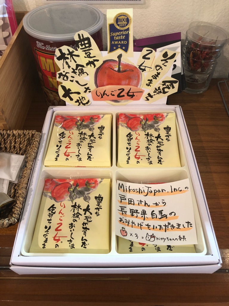 私の仕事場のフリーおやつコーナーに置かれていた、長野・白馬土産の「りんご乙女」。
