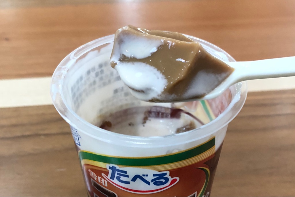 「雪印コーヒー」って地味にファン多いですよね。雪印コーヒーがプリンになった「たべるコーヒー」をコンビニで発見。しかもビターテイスト新味Ver.です。