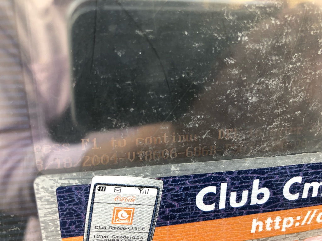 真ん中に液晶パネルがありますね。この画面には、本来コカ・コーラ系CM映像が流れたり、購入時にCmode使用方法や残額などが表示されたりしているらしいんですが、365日日差しと風雨にさらされ、液晶画面が完全に焼けており、うっすらと「何か表示されている」以上確認しようがないほど、視認性が皆無でした。