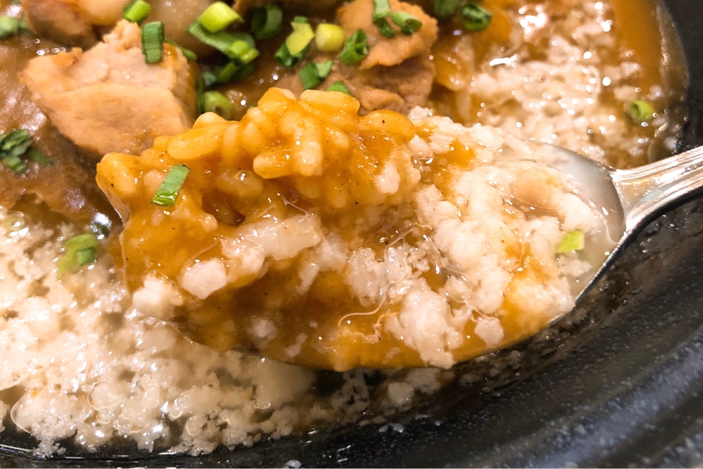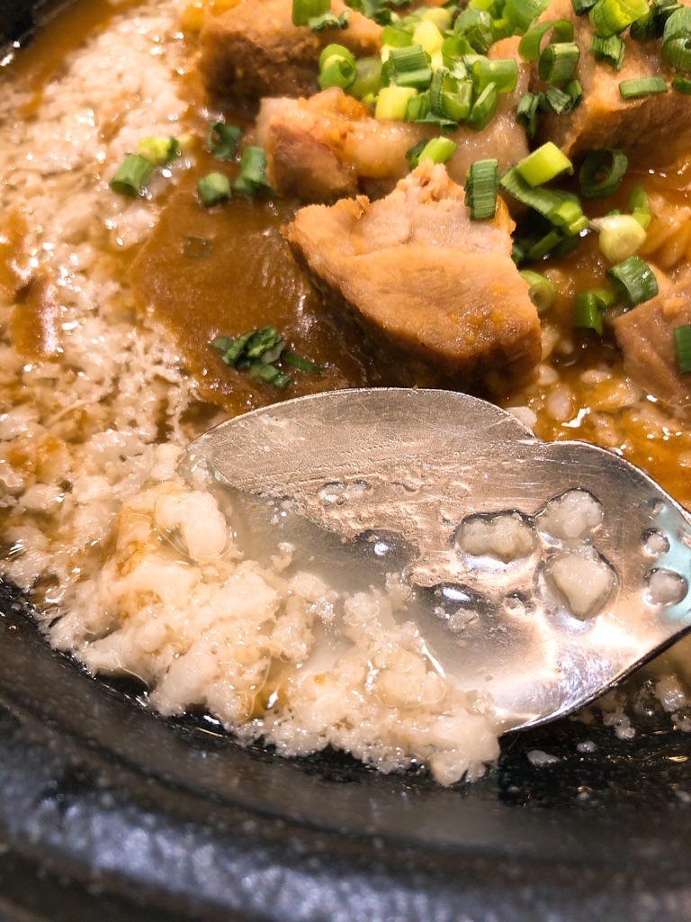 ルーのかかったライス、背脂。もはやどっちがライスでどっちが背脂かわからない。