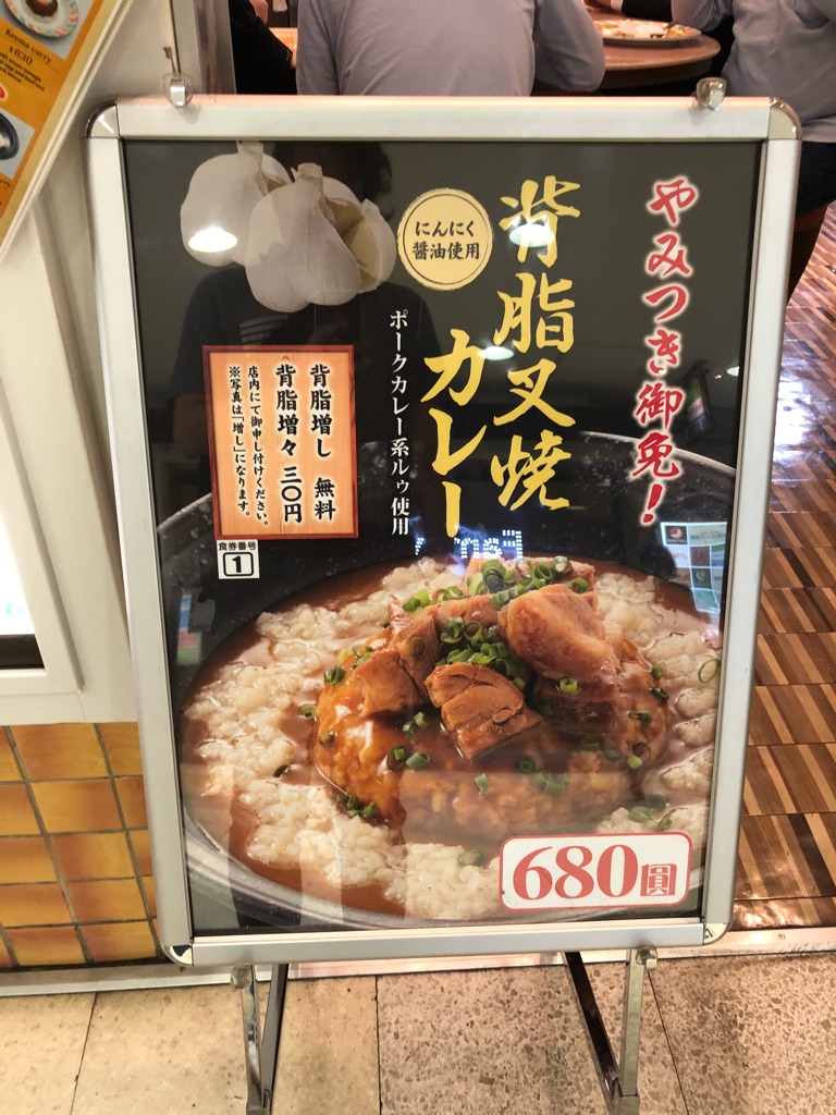 B級グルメ好きの間で話題の「背脂カレー」は終了したが、「背脂叉焼カレー」は健在。