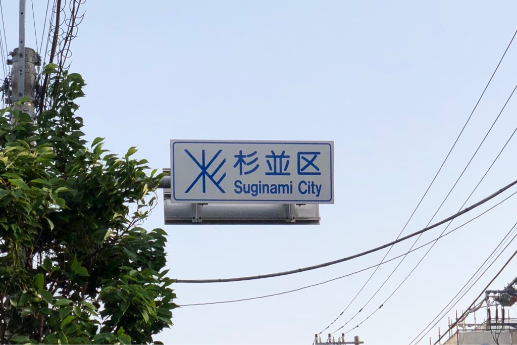 散歩をしていたら、中野区と杉並区の区境を通った。道路の上には「杉並区」の看板。