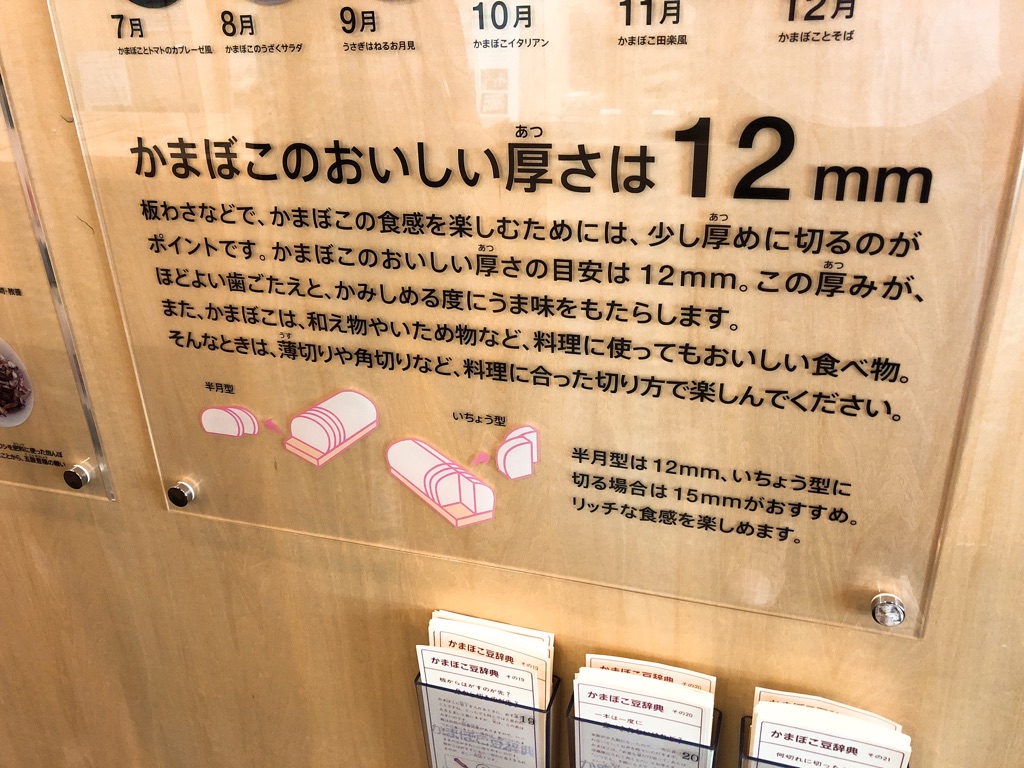 かまぼこ博物館の展示によれば、半月型なら12mm、いちょう切りなら15mmが、かまぼこのプリップリ感を楽しめる理想の厚さ。