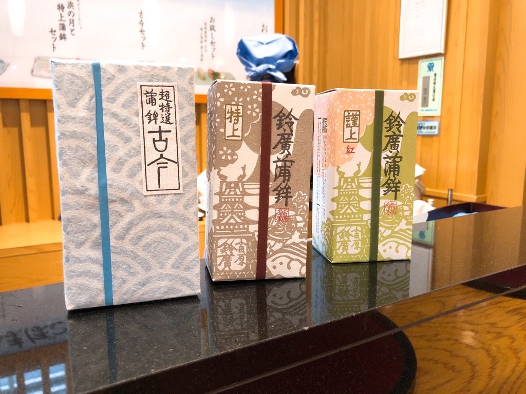 さて、そんな高級なかまぼこの味ですが、「右から順にお試しいただくのがおすすめです」と店員さんに言われたとおり、謹上(1,188円)→特上(1,728円)→古今(3,888円)の順に食べてみると、その食感と味わいに微妙な違いを感じることができました。