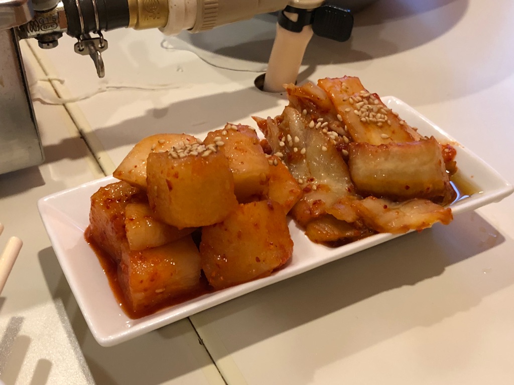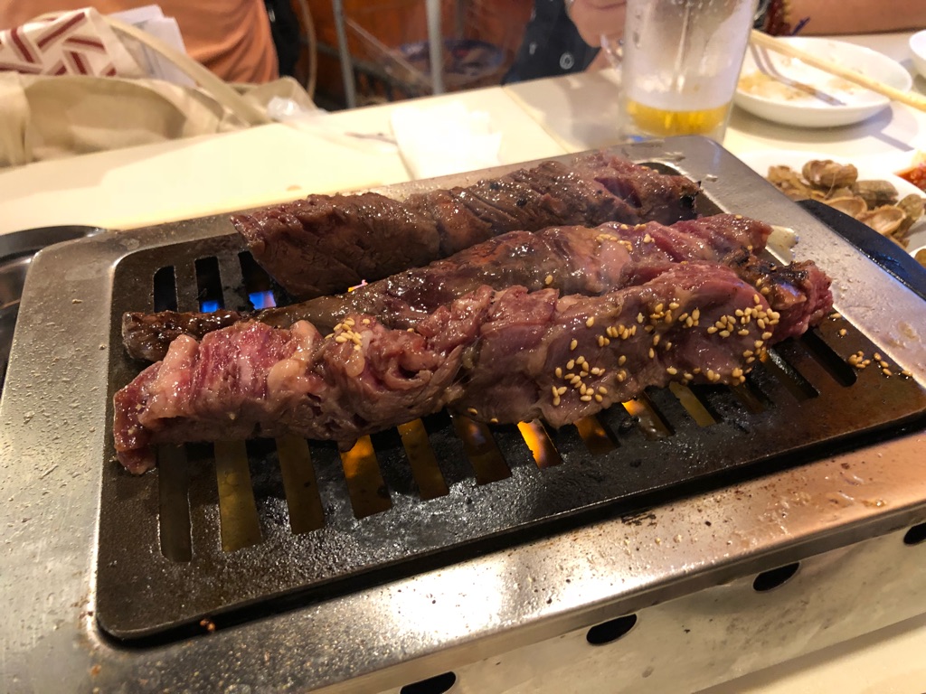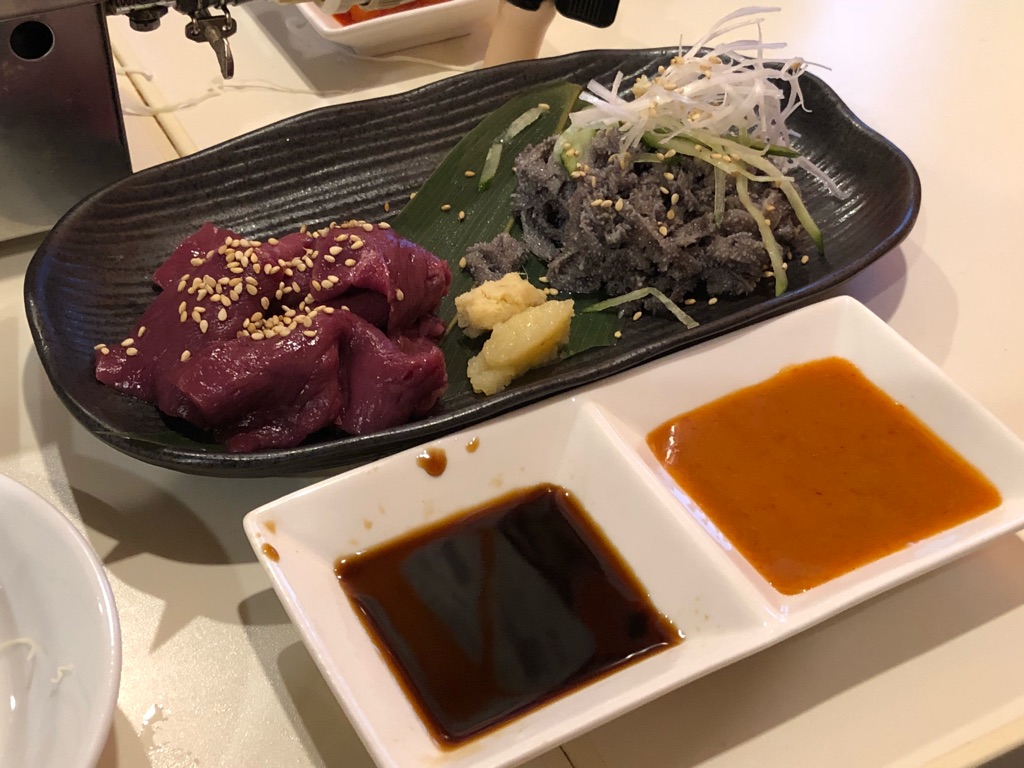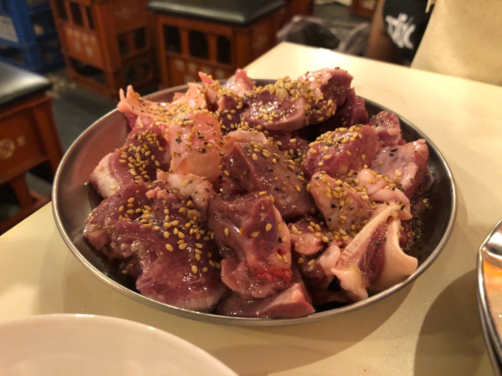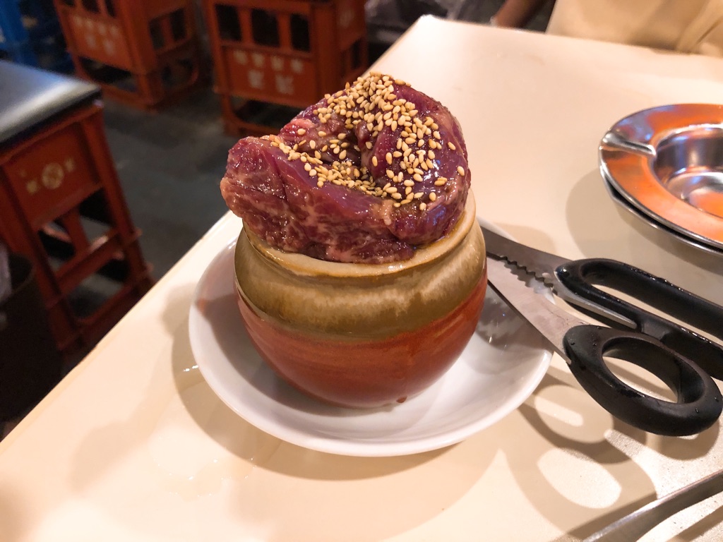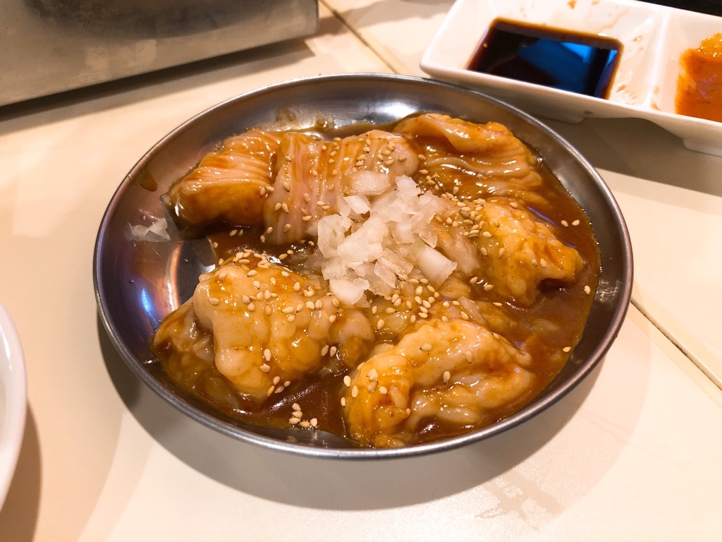 塩味の焼き肉やホルモンはともかく、タレ味が付いている焼肉・ホルモンに、さらに醤油を付けるというのはどうなんだろうと最初は思いましたが、甘めのタレがしっかり付いているからこそ、醤油がその甘さ、旨味を引き立ててる感じで良いですね。