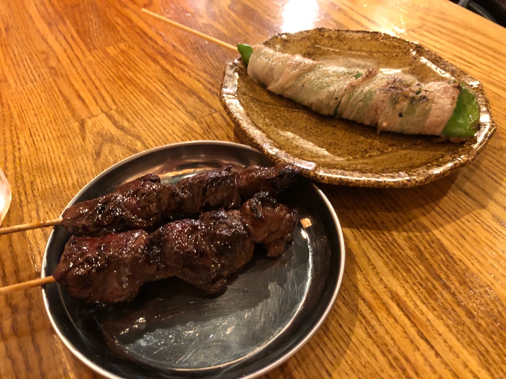 ▲さがり串(1本300円)と甘ながピーマンバラ巻き串(1本150円)