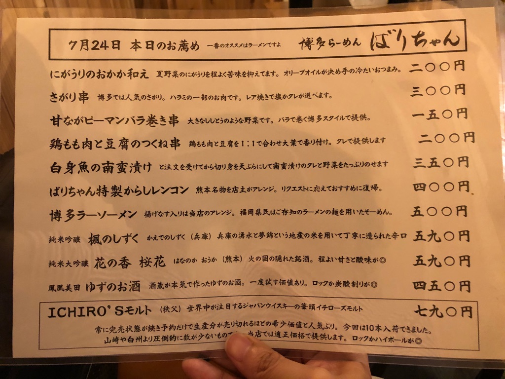 — 博多ラーメン「ばりちゃん」高田馬場本店 (@bababarichan) 2018年7月13日