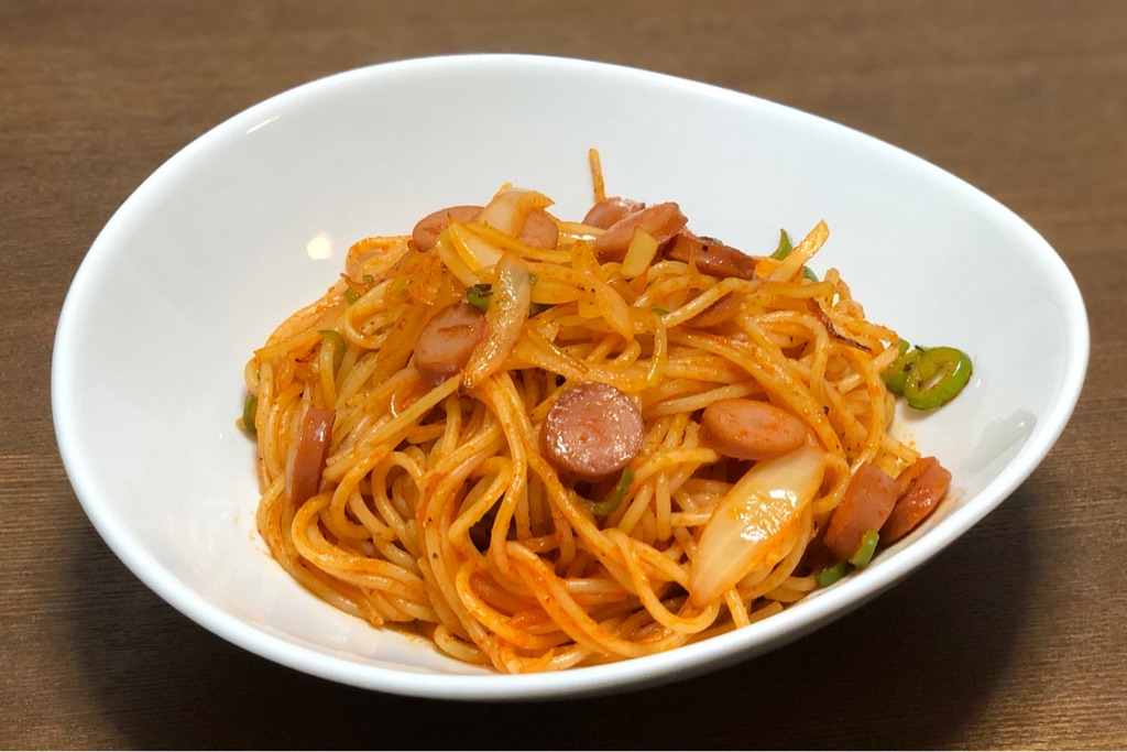 写真は私が作った「シラチャー・ナポリタン」。トマト成分ゼロ、赤さはすべてタイ発アメリカ育ちのホットソース「シラチャー」です。辛いですよ。でも、甘いですよ。酸味もある。