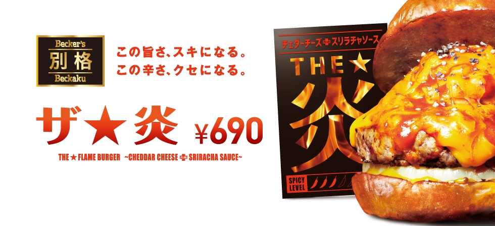 ハンバーガーチェーンの伏兵「ベッカーズ」に、私が個人的に進めている" #シラチャー布教活動 "を後押しする期間限定メニュー登場!スパイシー&ボリューミーな「別格ザ★炎」!