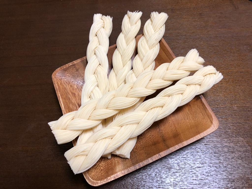 しめ縄のようで神々しく美しい「手延べ三輪素麺」。見た目だけでつい買ったけど、これ茹でる時きちんとほぐれるんだろうかw