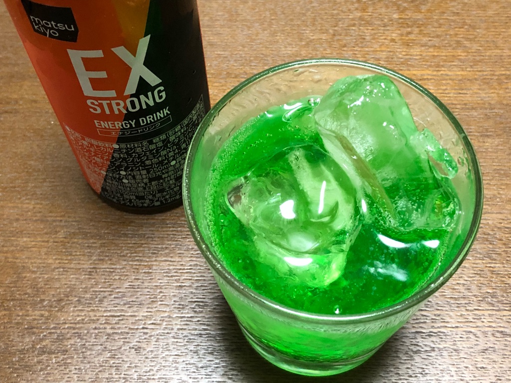 カフェインはレッ○ブルの2倍!色もヤバい!マツキヨPBエナジードリンク「EX STRONG」