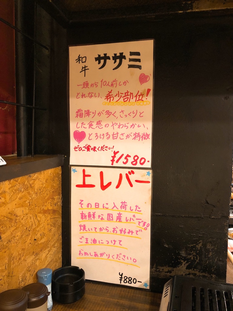 店の名前からして「ホルモン閻魔」ですから、焼肉メニューにはホルモンが豊富。当然通常の焼肉メニューよりも先(左側)に記されています。