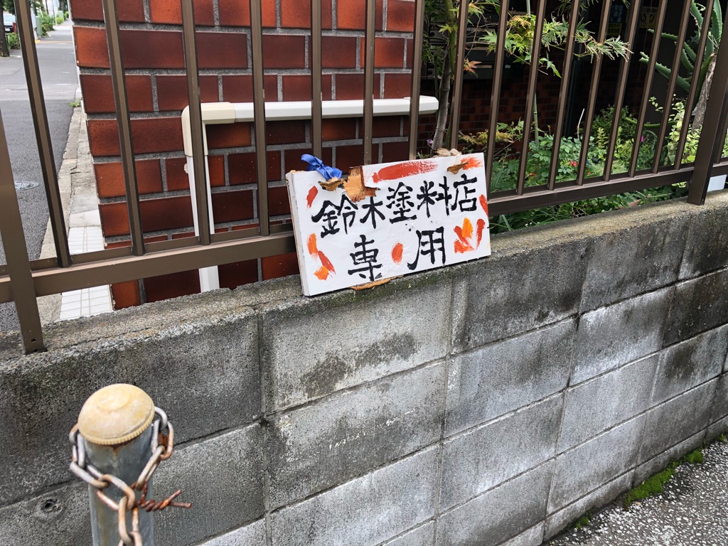 とある駐車場の「関係者以外駐車禁止」の看板が、妙に汚い。“塗料店”の駐車場ならよけい、塗装に気を使わないとダメじゃないですかね……。