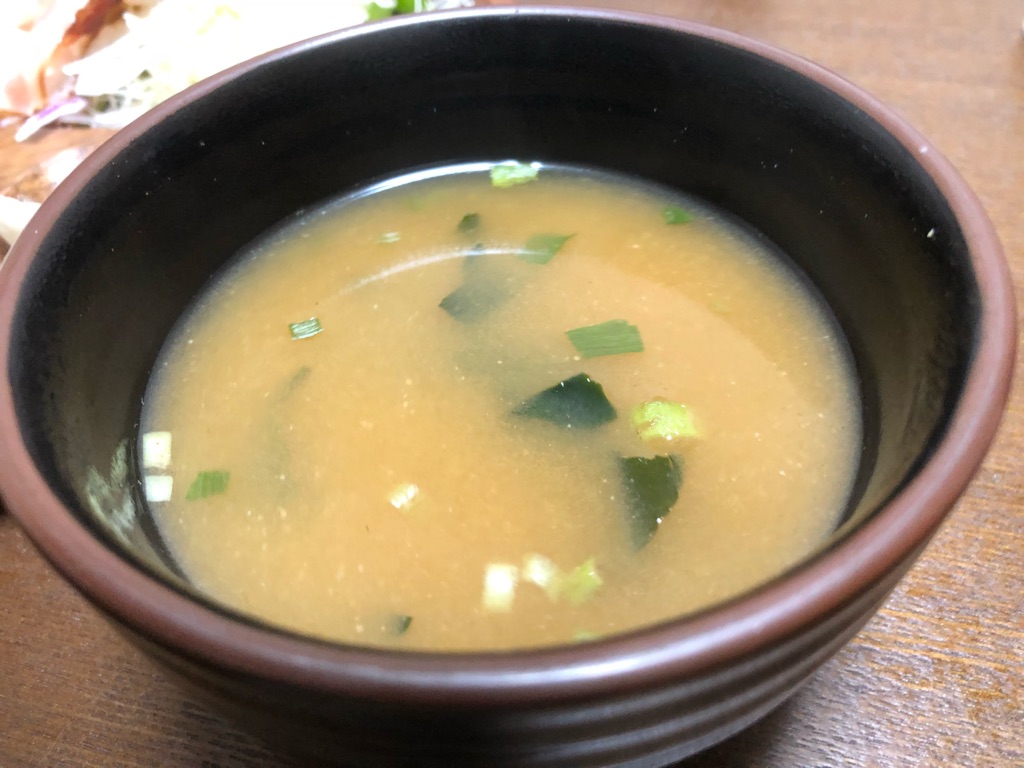 減塩タイプを買ったということもあるんでしょうがインスタントみそ汁のわりにはまろやかで、良い意味で“地味”なみそ汁でした。言われなかったら「あれ? 味噌変えた?」くらいの反応が出そうな、手作り・ご家庭の普通のみそ汁感。