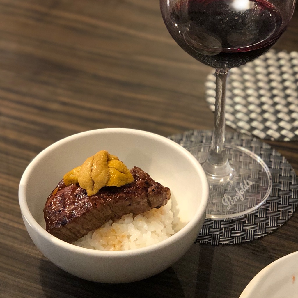 バターダレで仕上げたシャトーブリアンをOTR(On The Rice)。さらにウニのっけちゃったりして。