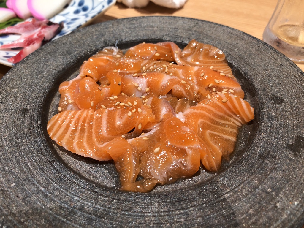 レバ刺しみたいって、所詮サーモンだろ……とか思ってたんですけど、実際に食べてみると意外にレバ刺し感あります。