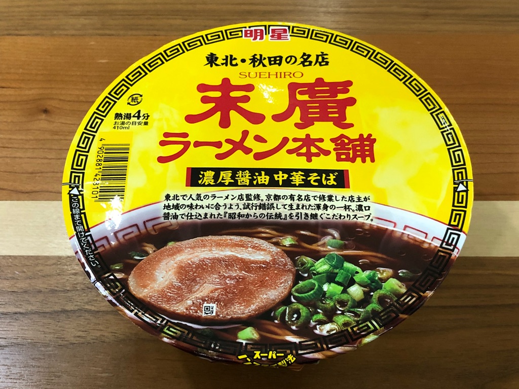 「餃子のまんま」をそのまま食べて、なかなかに気に入ったので早速2袋目をセブンイレブンに買いに行った。そしていつ食べようかとストックしていた明星「末廣ラーメン本舗 濃厚醤油中華そば」カップ麺を出して来て――