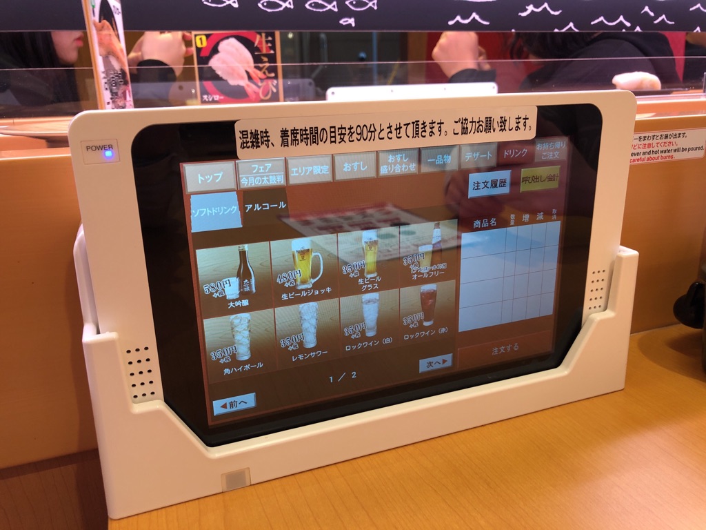 ちょっと前に行った「無添くら寿司」では、寿司皿を卓上ポケットに投入するカウンターがお会計の手段となっていることを知り驚いたものですが、スシローさんは昔ながらの店員さんが皿の数を確認する会計システム。