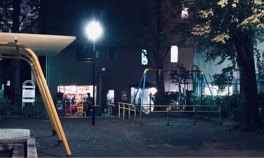 この写真は夜ですが、昼から飲めるそのスペースは公園に面しており、子供が遊んでいたりするととても背徳的な感じ。