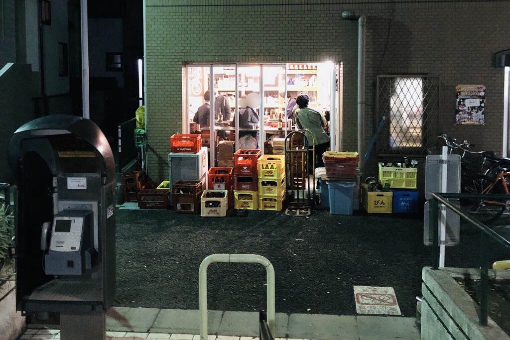 見えますか? じんわりと優しい明かりの下で、立ち飲みをしているお客さん達が。
