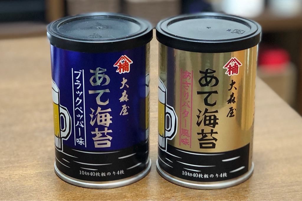 大森屋の「あて海苔」は、普通の海苔にしか見えませんが、ブラックペッパー味にあさりバター風味。お酒のアテによろしい味付け海苔。