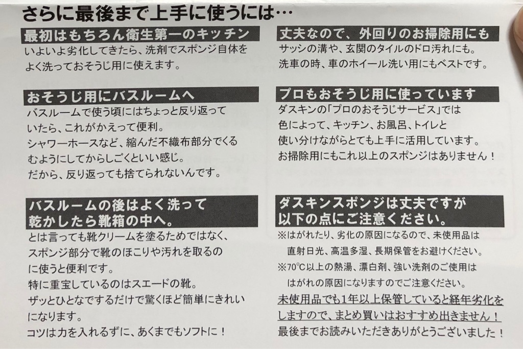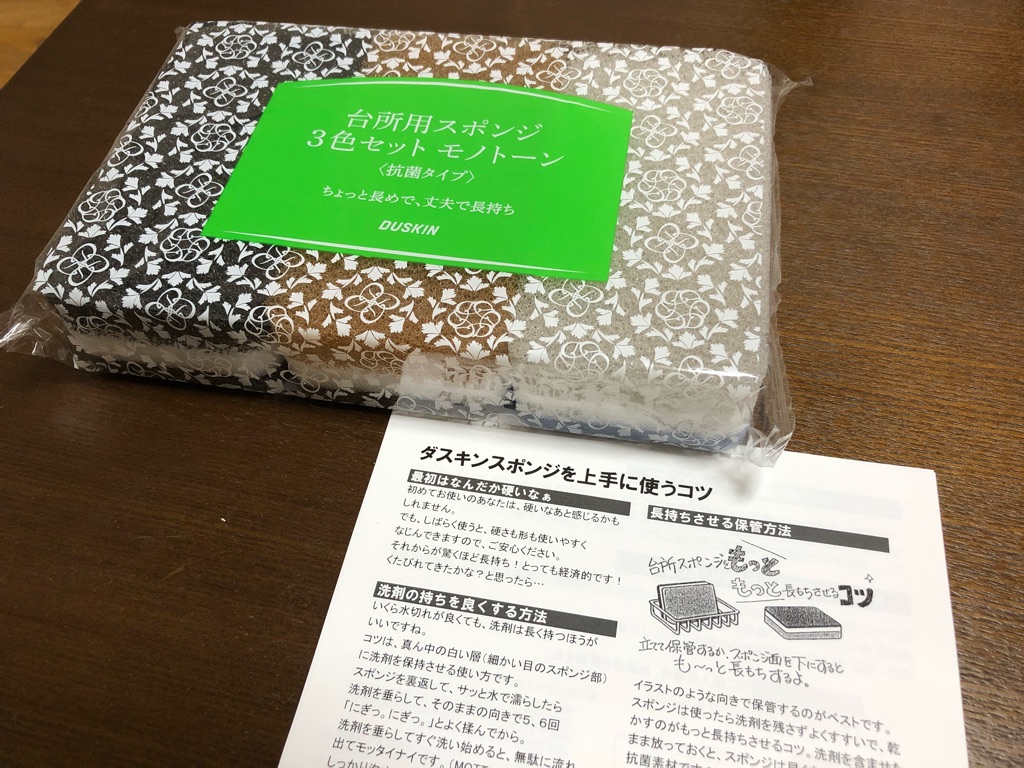 というわけで、プロの現場で使われる、丈夫で長持ちするダスキンの台所スポンジ。オススメです。