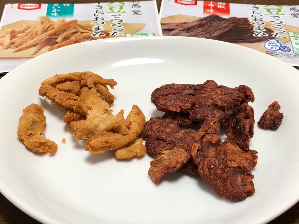 大豆で作ったとは思えない、ガチにさきいかとビーフジャーキーの味だった……。