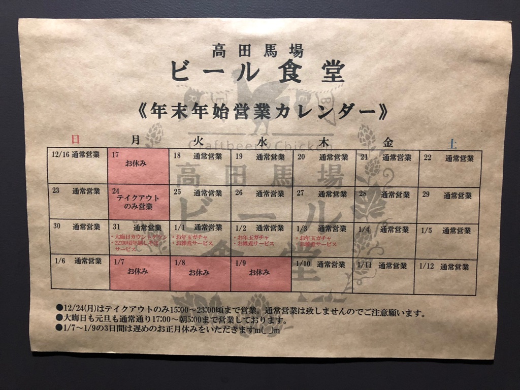 なお店頭のカレンダーによれば、2019年は1月1日から通常営業、1月7日から遅れた正月休みをとるスケジュールらしいので、おせちや雑煮に飽きた頃合いで、チキンとビール。贅沢で良さげじゃないですか?