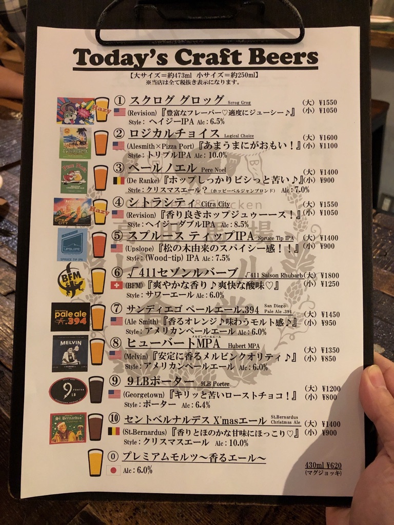 サイズは、473mlの大と、250mlの小で提供。その価格は大は1,500円前後、小でも1,000円前後と、学生街・高田馬場にしてはちょっとお高めの印象。