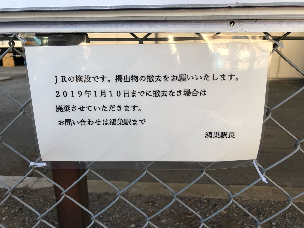 それは、JRの駅長の名で記された、撤去のお願い。そして期日までに撤去されない場合は廃棄する旨の通告。(今頃は無くなっているでしょうか。)
