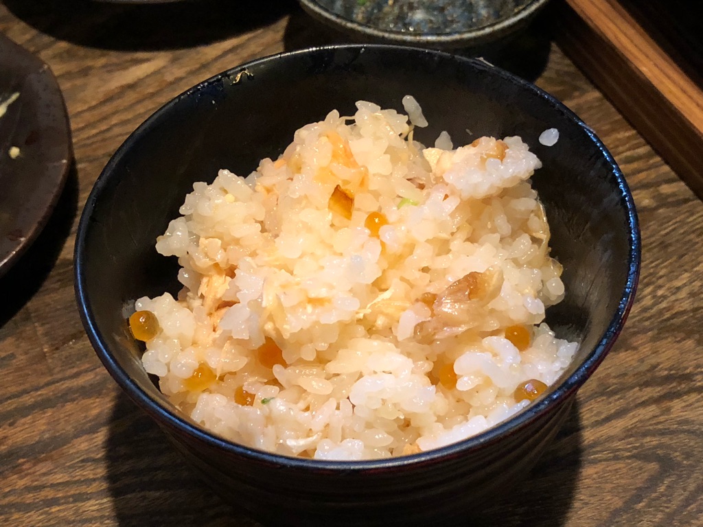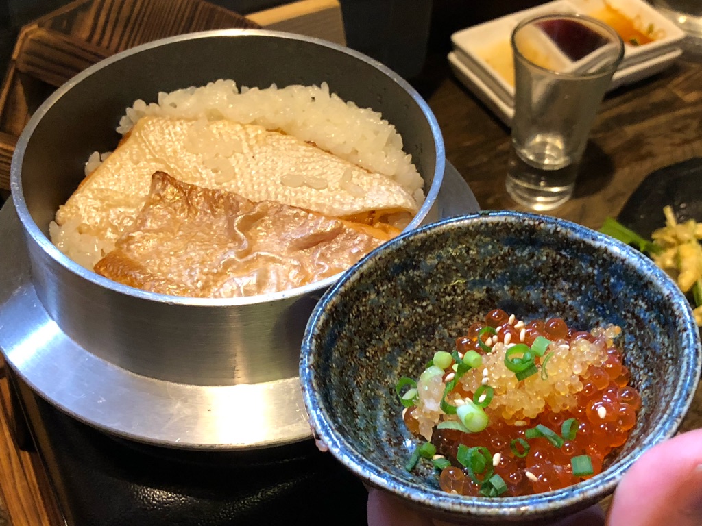 イクラと鮭の釜めし、うめぇよ〜!(高田馬場「炙りのどまん中」にて)