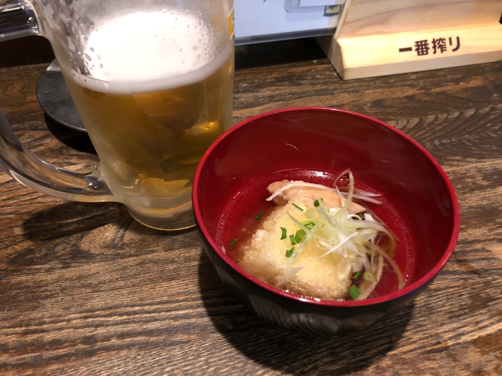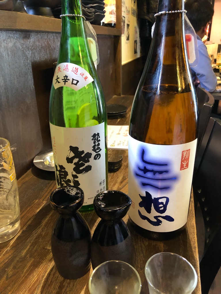 ぐびっとビールを飲み干し、ファーストオーダーセットの日本酒をいただく。埼玉の「琵琶のささ浪」、新潟の「無双」。なみなみとくち一杯まで注がれたとっくり。まずおちょこに移すのが難しい〜w