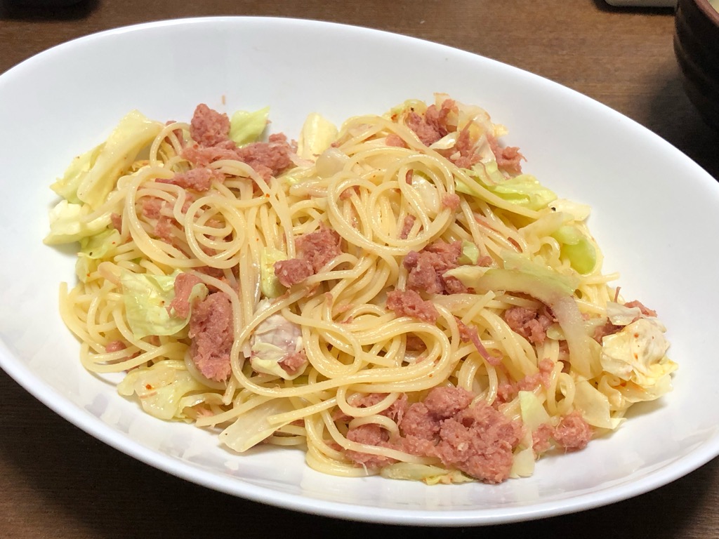 ★シーチキンコンビーフでペペロンチーノ作ってみた