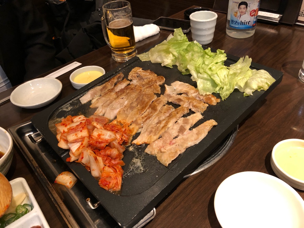「とん豚デジ」という店名もそこかしこで聞いていたにも関わらず、この日初めて来て、カンナ三段バラのサムギョプサル(特にマスタードソースとの相性)に驚いた。