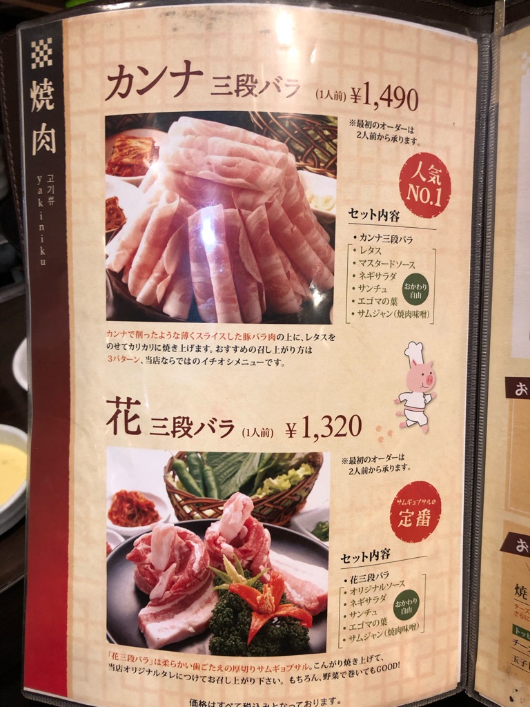 「とん豚デジ」のカンナ三段バラのサムギョプサルが至れりつくせりでおいしい。マスタードソース売って欲しい。