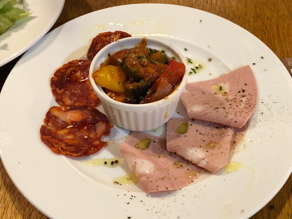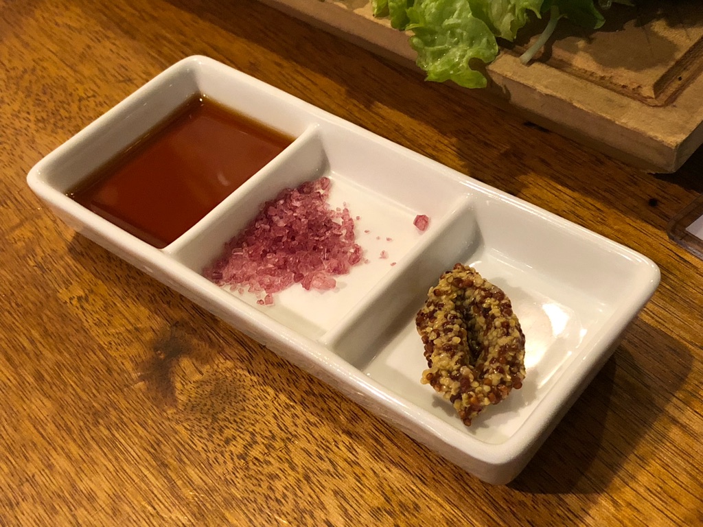 この日いただいた5,000円の【たっぷり肉盛コース】の料理を紹介しておきますね。